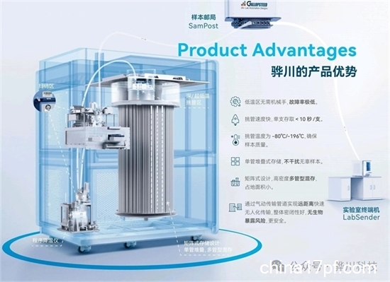 亮点展示:骅川带来的气动式自动化存储系统,以其“安全、高效、高密度”的特点惊艳全场。通过先进的压缩空气技术,实现了样本管的快速、无误传输,存取速度远超传统机械臂方式。同时,全程深低温保护与精准的单管取用功能,为珍贵的生物样本提供了最高级别的安全保障,是大型样本库应对海量样本存储需求的理想之选。