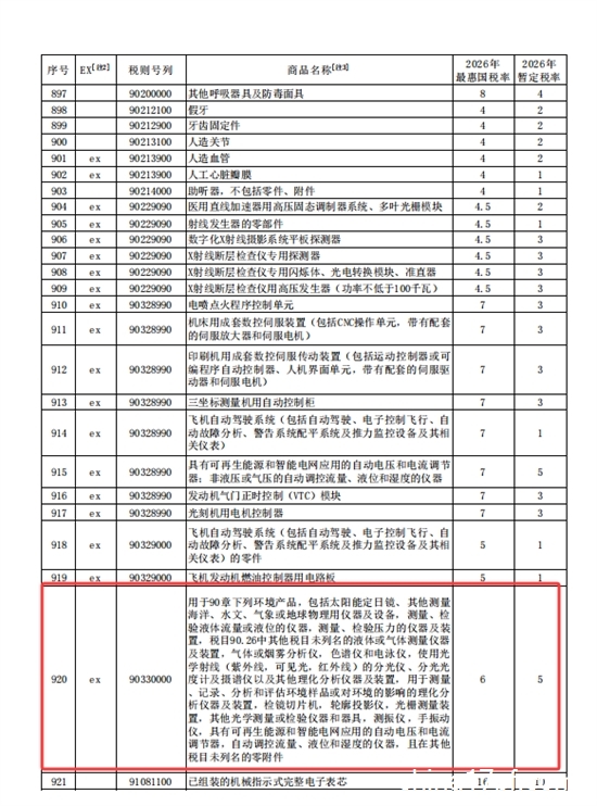 本次方案的调整,涉及仪器设备的有:液体或气体测量仪器及装置,气体或烟雾分析仪,色谱仪和电泳仪,使用光学射线(紫外线,可见光,红外线)的分光仪、测量、检验液体流量或液位的仪器,测量、检验压力的仪器及装置等。