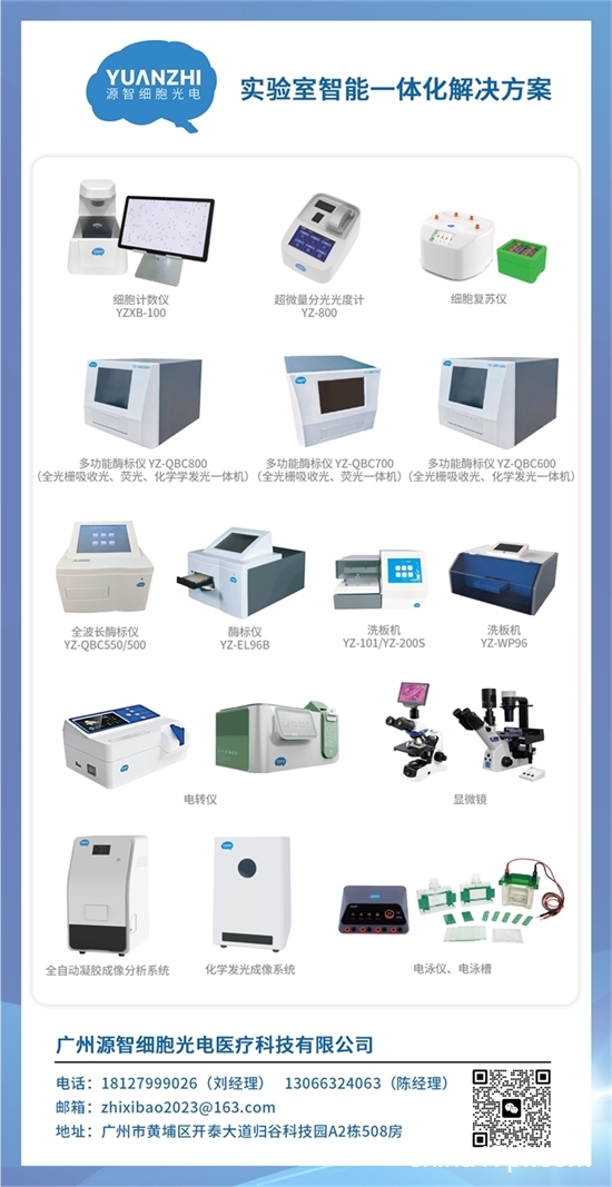 源智细胞注册于广州市黄埔区归谷科技园,是一家集研发、生产、销售与服务于一体的创新型智能智造高科技企业。公司以自主知识产权的“智细胞”算法平台和人工智能核心技术为基础,专注于生物仪器和生物医疗自动化智能设备的开发。其产品矩阵涵盖细胞计数仪、细胞复苏仪、超微量分光光度计、多功能酶标仪、电转仪、凝胶成像分析系统、化学发光成像系统及电泳设备等一系列高端仪器,广泛应用于生物医药、临床诊断、科研教育等多个领域。源智细胞已为上百家国内一流的高校、科研院所、医院、制药企业及生物公司提供高效精准的仪器设备和优质服务。